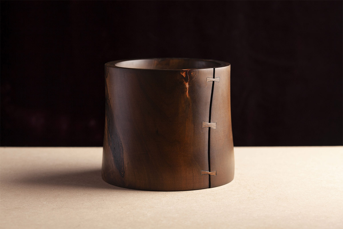 C’est seulement après le façonnage, au moment du séchage qui est un processus long et délicat, que mes pièces vont se transformer, se déformer, craquer, devenir le médium de ce qui fut et de ce sera. C’est là, avant qu’il ne soit trop tard, que j’apporte un soin particulier aux finitions. Je « soigne » les pièces. Pour les sécuriser, je place des agrafes en laiton ou des clés en bois sur les craques et les fissures. Pour les surfaces, je les brosse, les ponce, les huile, les oxydes et les brûle parfois.